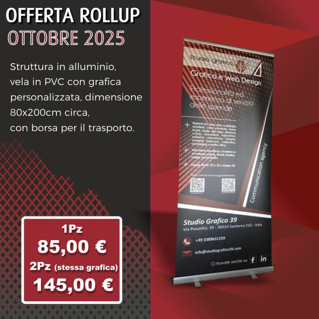Oltre ai prodotti qui sopra elencati, dove potete trovare i prezzi e le tipologie, ne forniamo anche molti altri su preventivo, quali adesivi per prodotti, auto, furgoni, vetrine, targhe, pannelli in alluminio/forex/plexiglass, insegne, prodotti per packaging personalizzati, calendari, timbri, buste, per ufficio, espositori, expobanner, gadget, bandiere, e molti altri… Visita la pagina altri prodotti di grafica su preventivo per vedere alcuni lavori da noi realizzati.