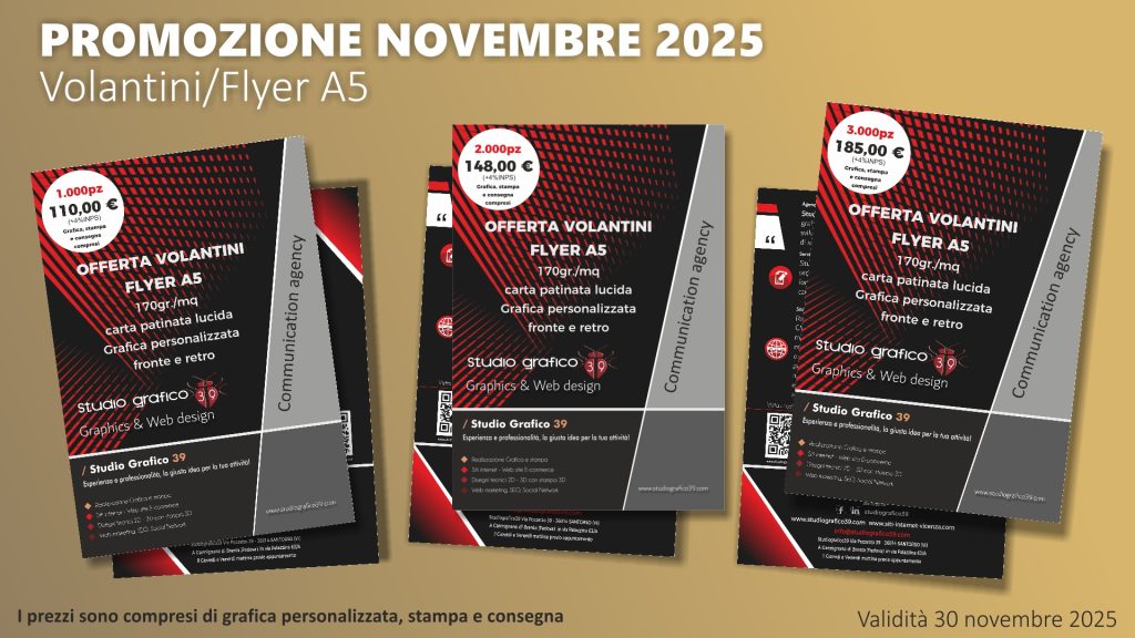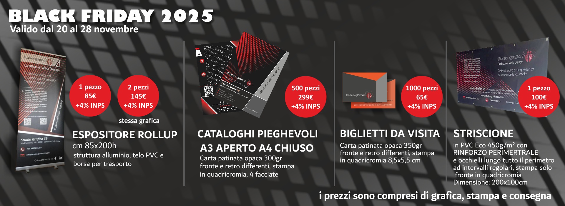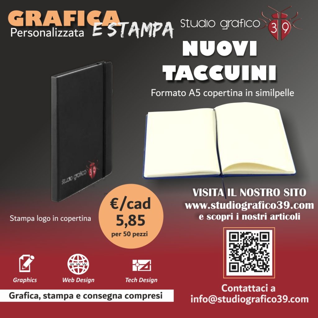 Inoltre realizziamo TUTTI I PRODOTTI ANCHE IN SOLA GRAFICA (preparazione file di stampa) e VIDEO per FIERE e Social Media su preventivo